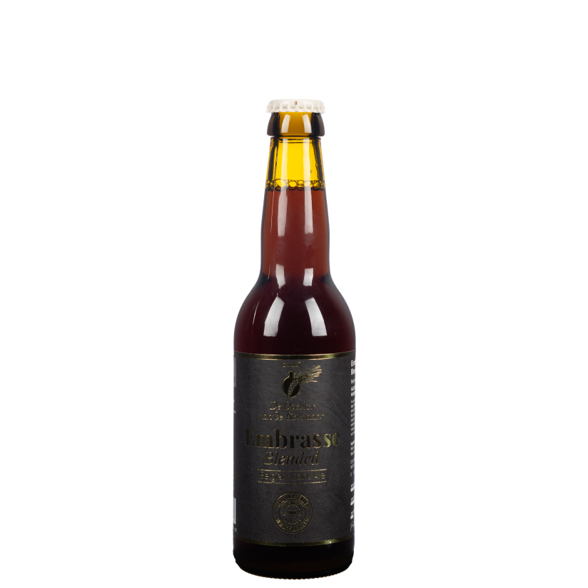 La toute première bière vieillie en fût de « De Dochter van de Korenaar » : la Blended Oak Aged Embrasse. Cette bière mûrit environ un an dans des fûts de whisky single malt du Speyside, affinant ainsi son caractère et absorbant pleinement les arômes du whisky. Le résultat est une bière full malt de qualité supérieure, vieillie sous bois et refermentée en bouteille. Au cours des 6 à 8 mois de maturation en fûts de whisky mélangés, la bière acquiert de riches tons de whisky et développe un goût plus doux et plus ample.